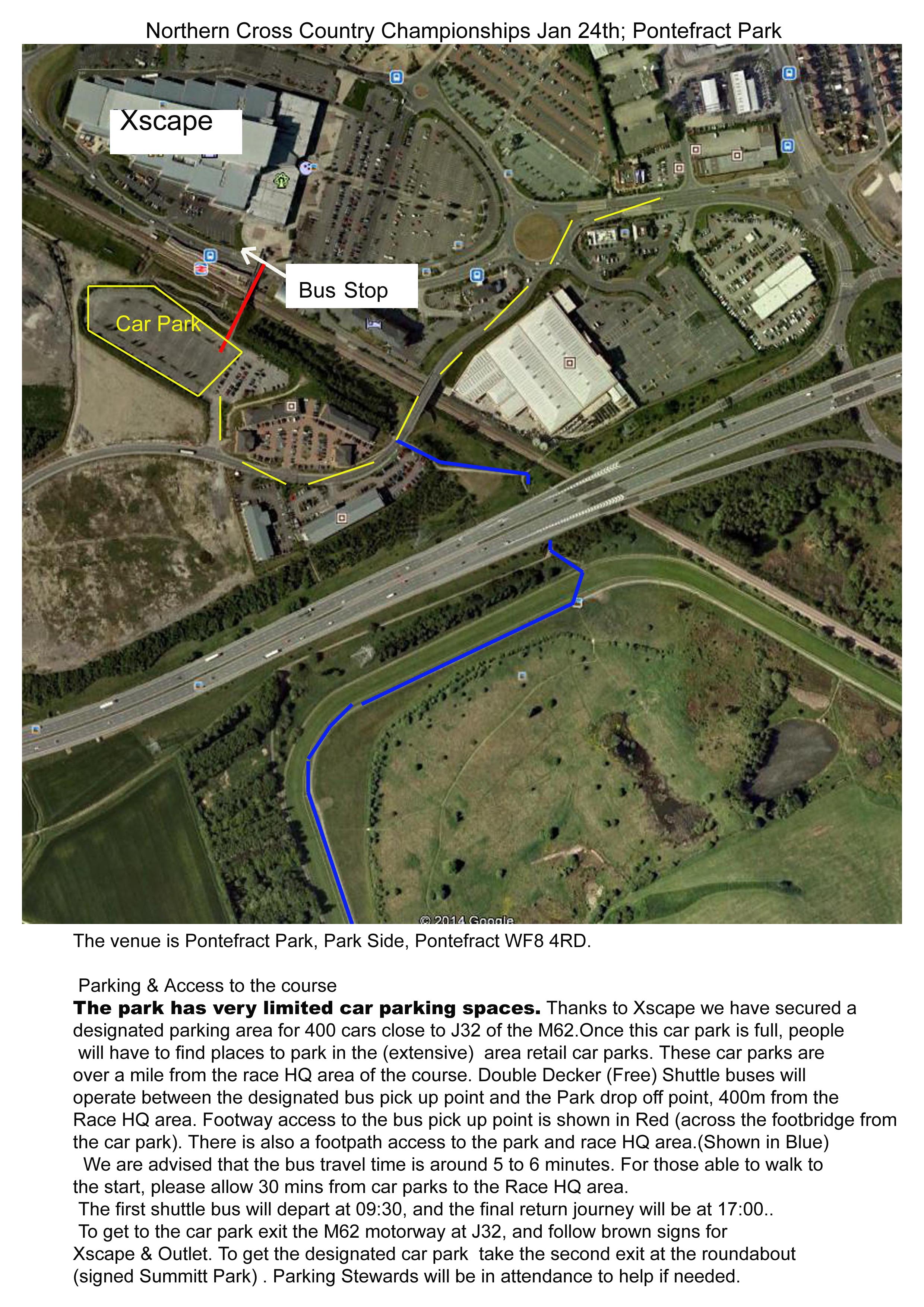 Below are directions to the Junction 32 Shopping outlet where car parks for the NA Cross Country Championships are situated. Signs will be in place to direct race traffic to the correct car parks and the shuttle bus service.