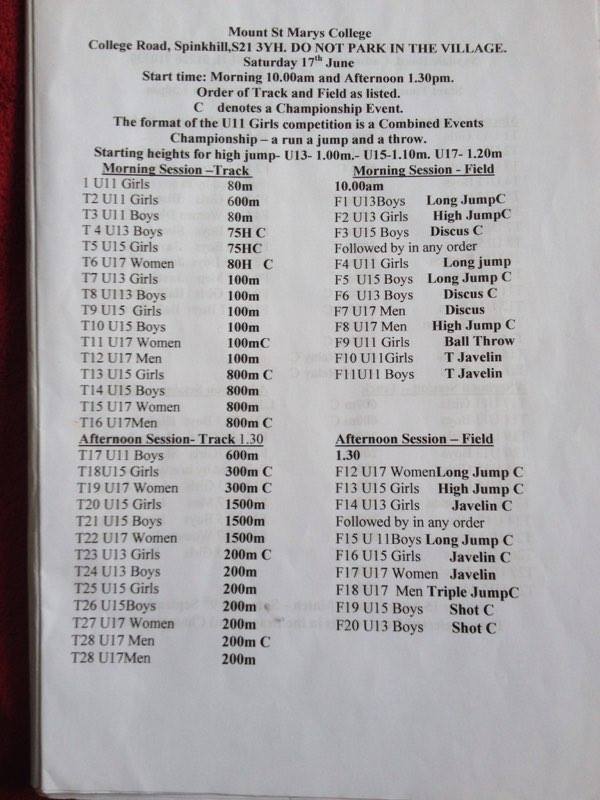 South Yorkshire Track and Field – 17 June 2017 – Mount St Marys College Posted on June 4, 2017 by martin in News, News Ticker | 0 Comments Tweet Message from Jude Allam “Please can I have your field events for June 17th ASAP, Many thanks, Jude” Tweet